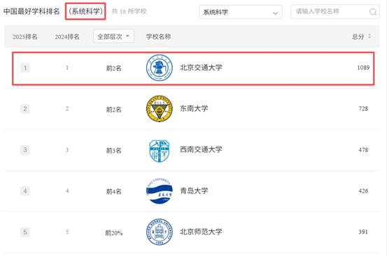 北交大系统科学学科建设始于1998年,聚焦系统科学在复杂交通系统的理论研究与实际应用研究领域,运用大数据分析、人工智能、优化建模等方法研究城市道路交通、网络交通、轨道交通、低空交通以及综合交通系统等。北交大系统科学学科在2004年—2020年的全国学科评估中连续6次排名第一。2017年成功入选国家首批“双一流”学科建设名单,并在首轮建设评估中获得优秀,2022年再次入选国家“双一流”学科建设名单。2019—2025年蝉联软科中国最好学科排名第一,在国内乃至国际范围系统科学领域,已具备领先卓越的学科实力。