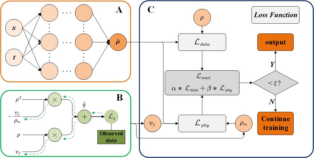 在国家自然科学基金基础科学中心项目、杰出青年基金项目、优秀青年基金项目和青年基金项目(批准号:72288101, 71825004, 72122003, 72201029)资助下,男同性恋av 高自友教授团队针对稀疏数据场景下的道路交通状态估计问题开展研究,设计了基于物理信息深度学习(Physics-informed deep learning, PIDL)的交通状态(速度和密度)估计框架。该成果以“Physics-informed deep learning for traffic state estimation based on the traffic flow model and computational graph method”为题,于2023年发表在《Information Fusion》期刊上,论文链接: //doi.org/10.1016/j.inffus.2023.101971。