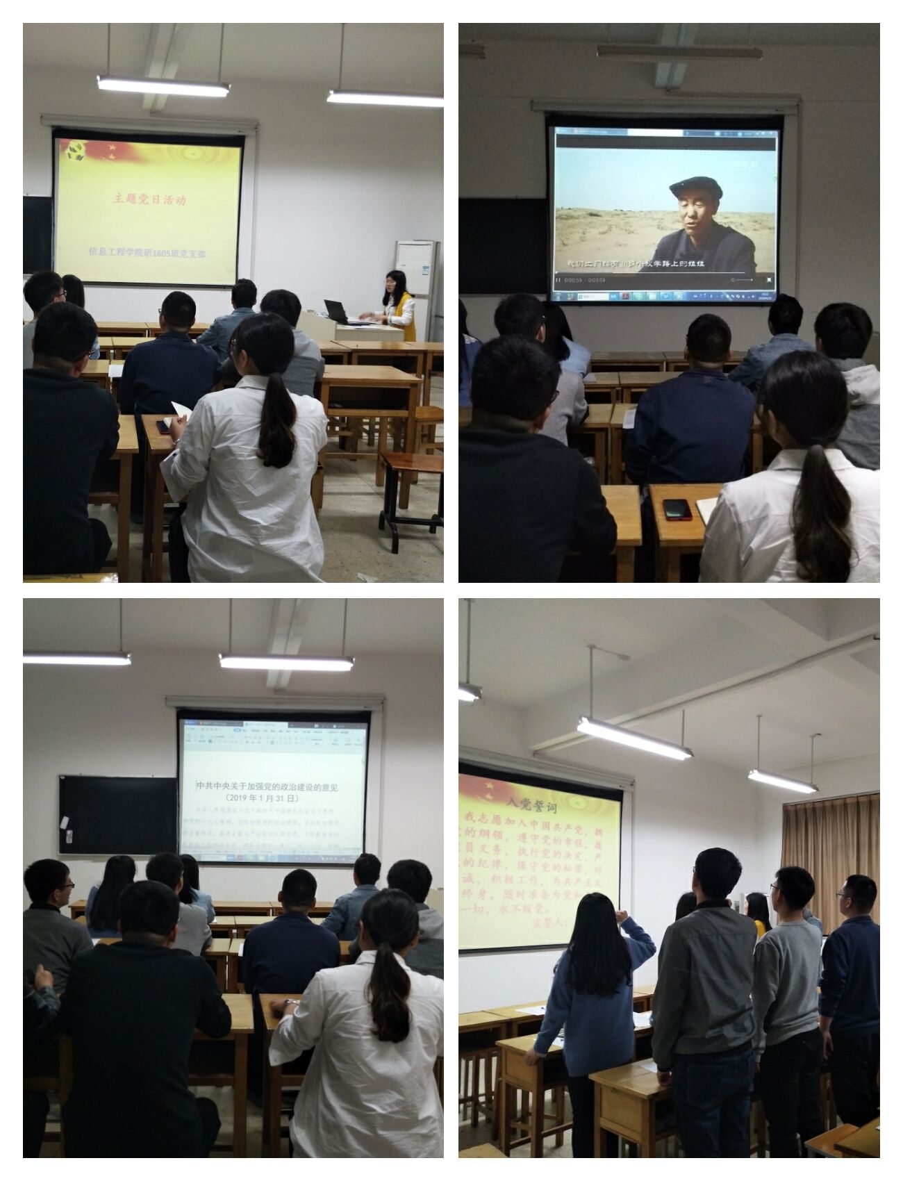 2019年4月23日下午4时,信息工程学院/软件学院研1605班党支部在工科2-426组织党员开展主题党日活动,活动由党支书袁德颖同志主持。
