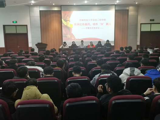 为传承红色基因,2020年12月23号下午,信息工程学院在工科二号楼610召开了“传承红色基因,培养‘3E’新人”学霸党员宣讲会,本次会议由信息工程学院学工办副主任黄晓敏老师主持,学院党委副书记赵秋燕老师出席会议,各年级学生代表参加此次会议。
